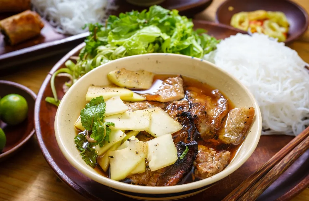 - Món đặc trưng: Bún chả nướng, chả miến